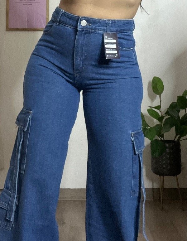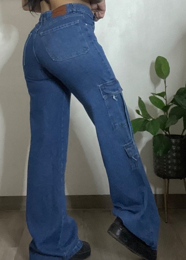 Jeans cargo tela rígida